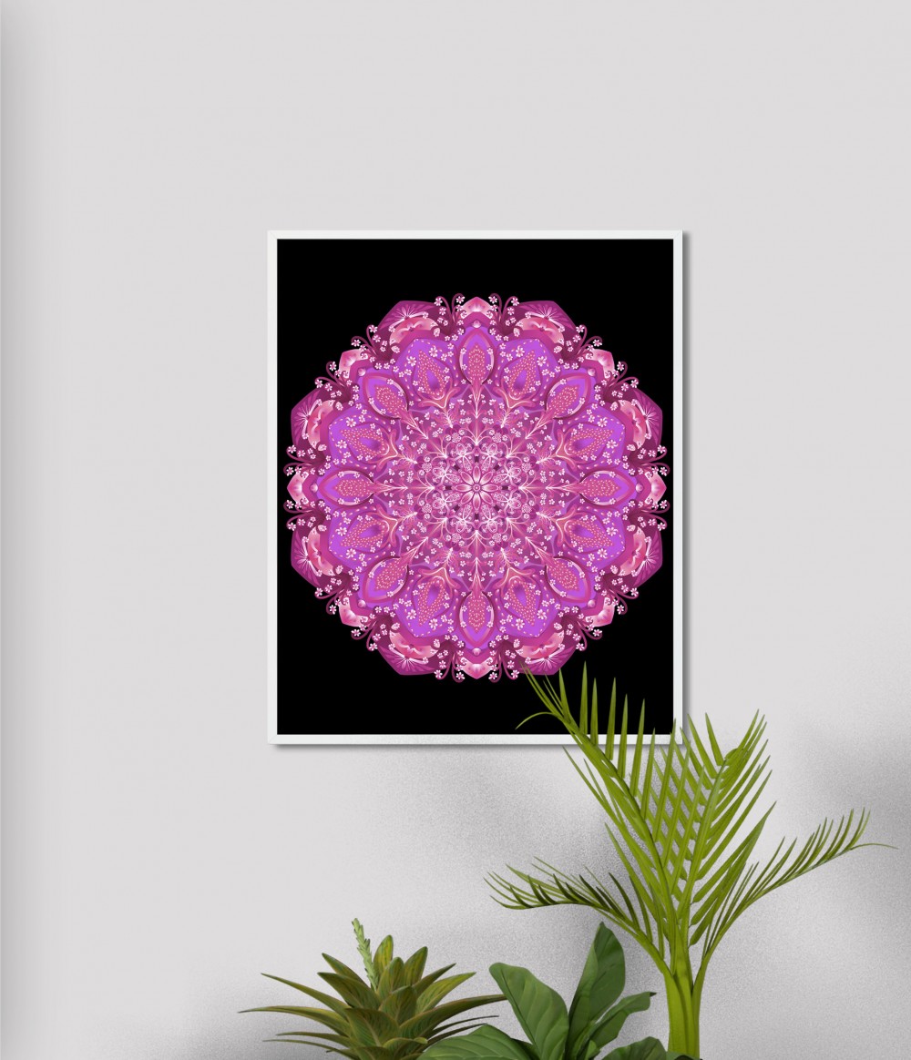 Delicate, floral, original mandala pattern in shades of heather. In the