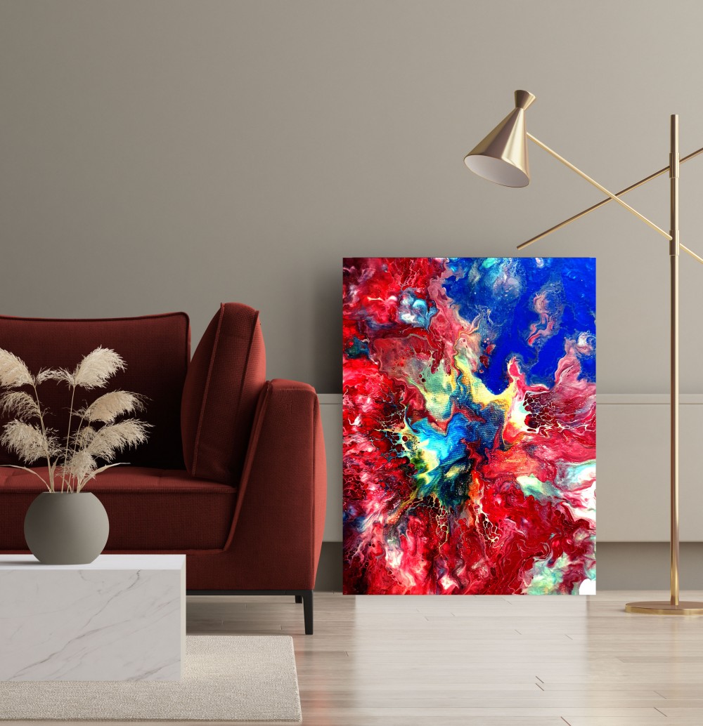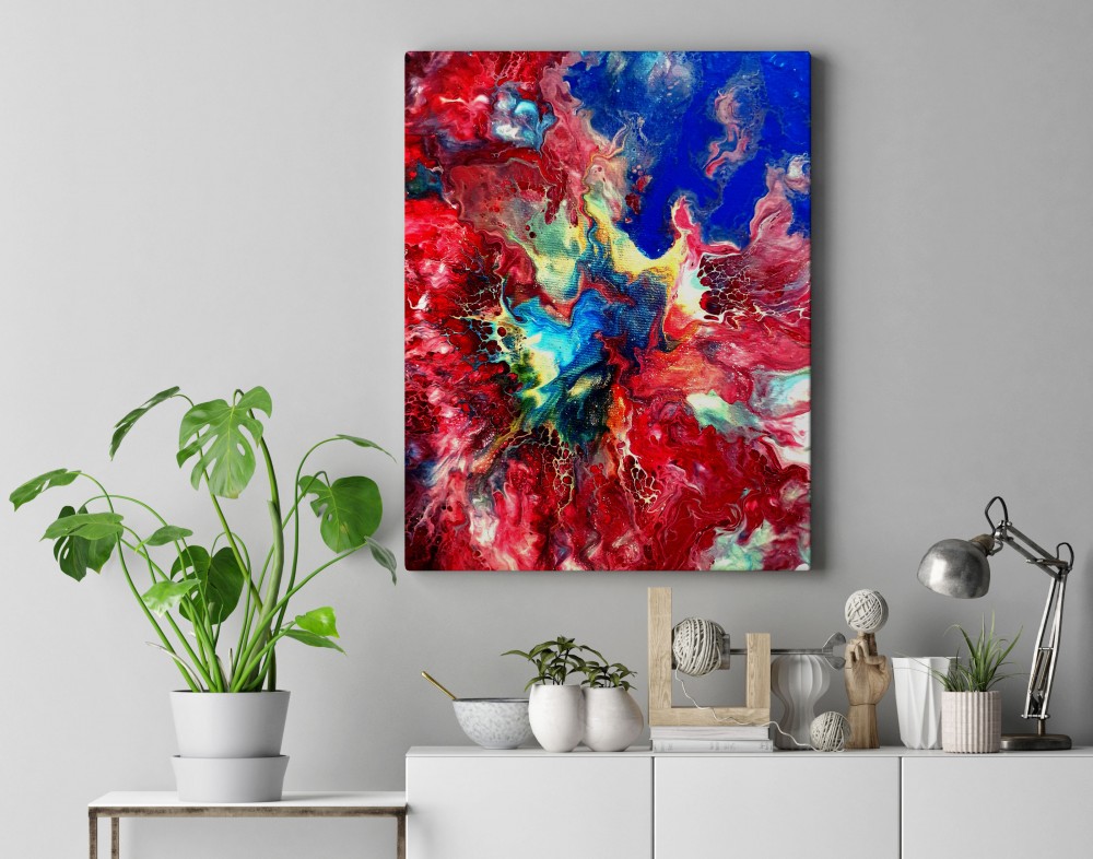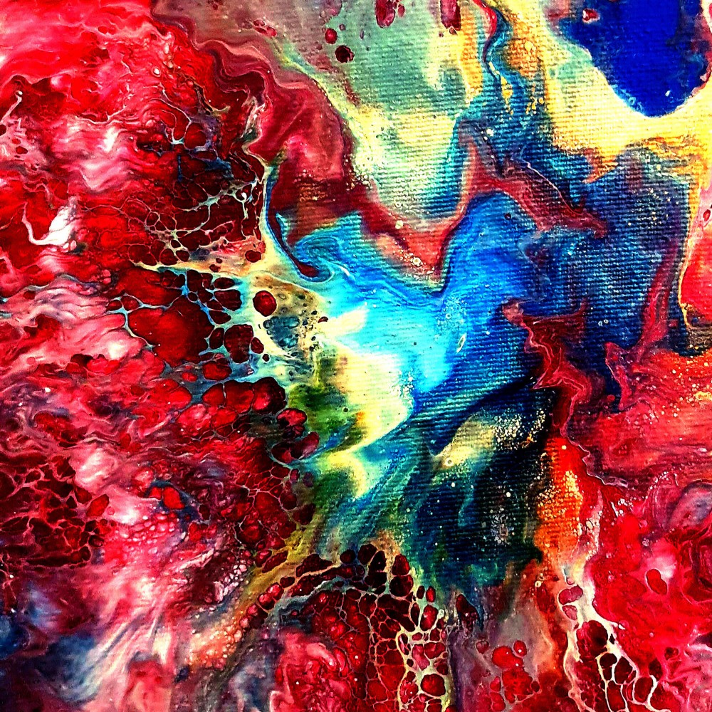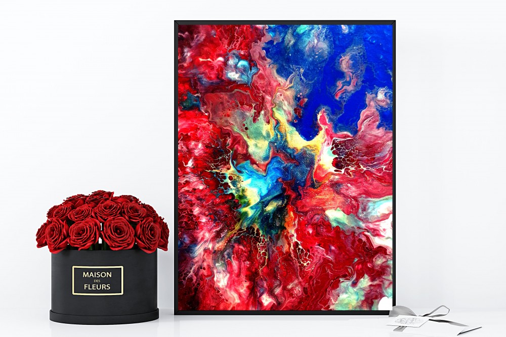 an original acrylic painting made by using the pouring method. This method