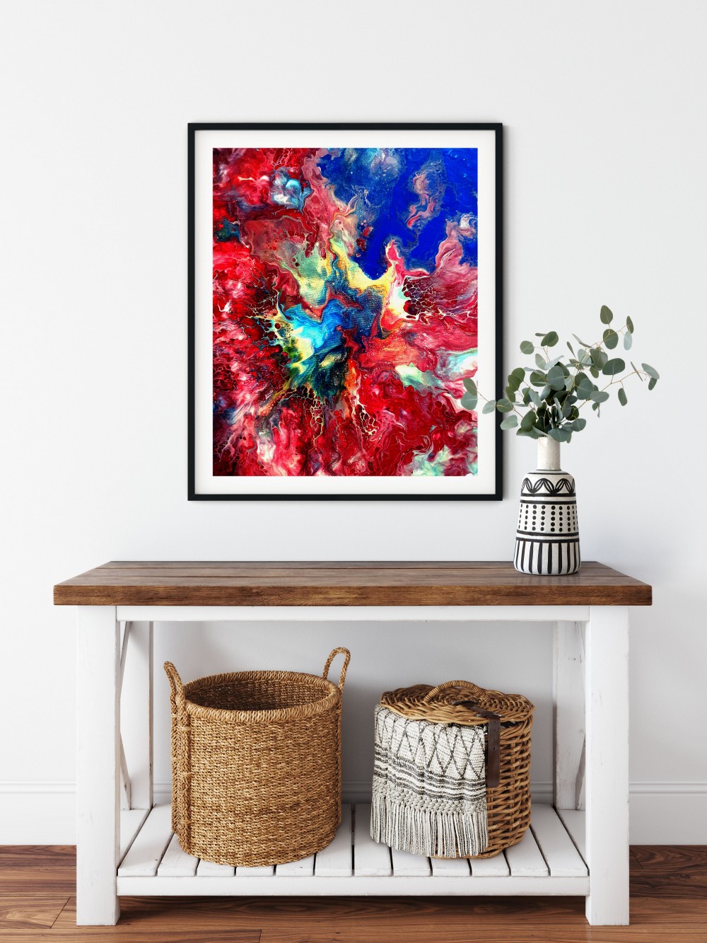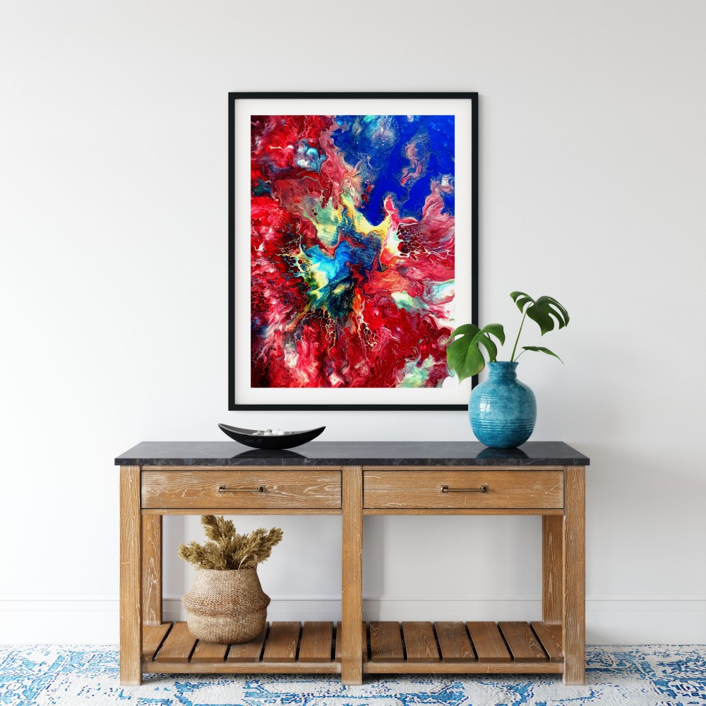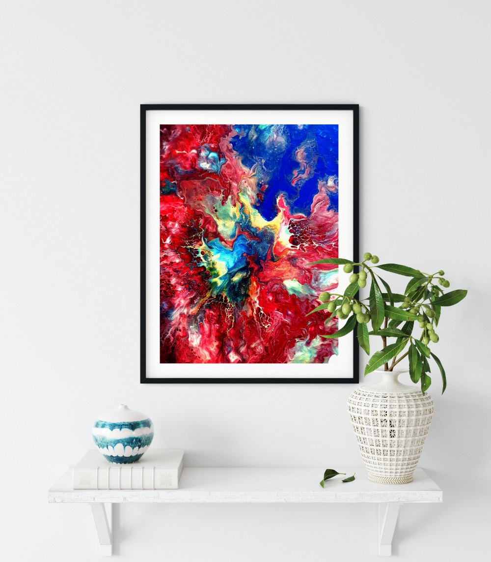an original acrylic painting made by using the pouring method. This method