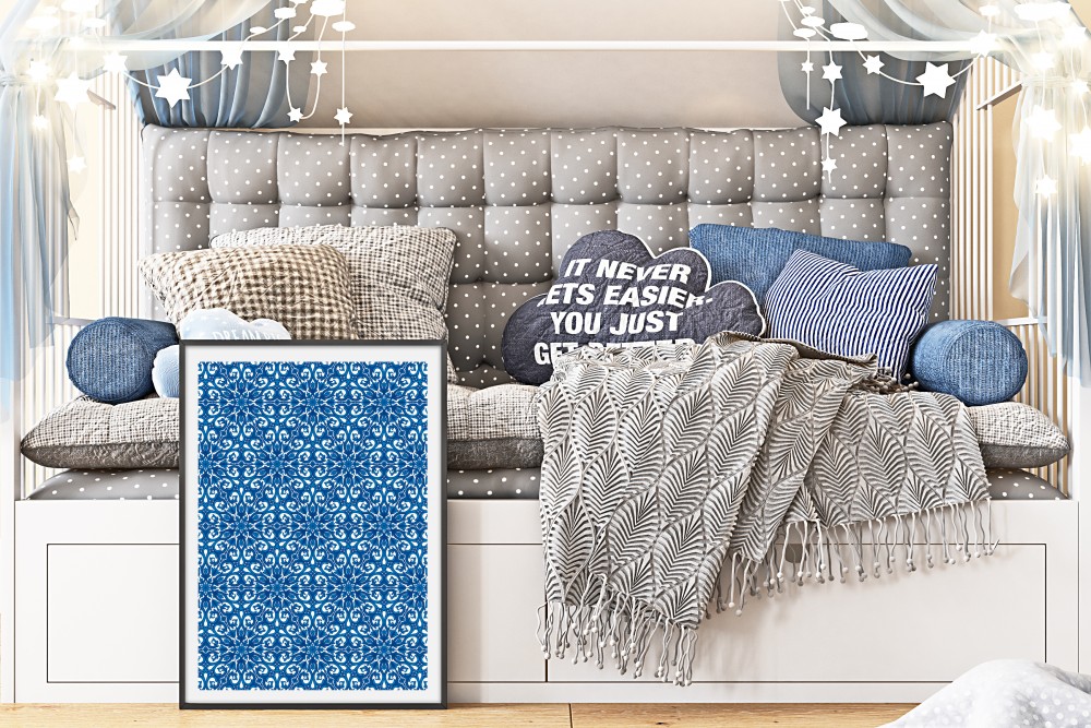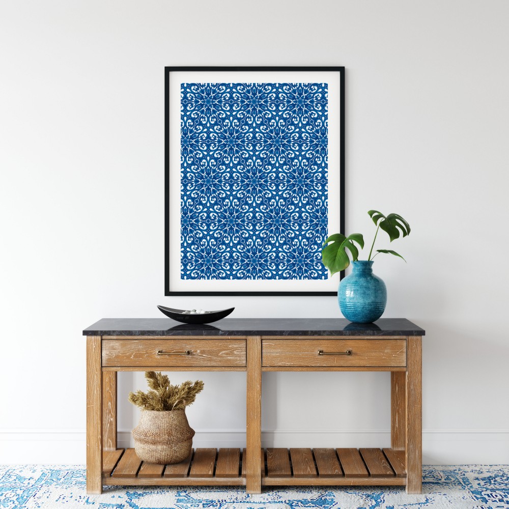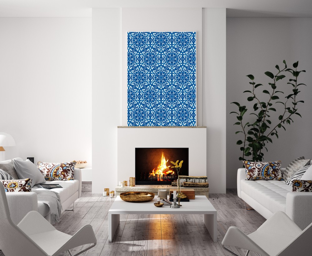 The original design inspired by the blue porcelain with oriental and floral tang.