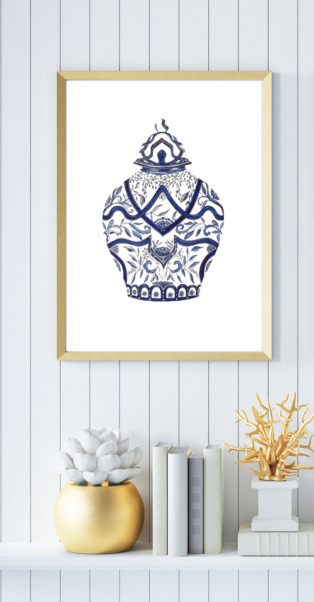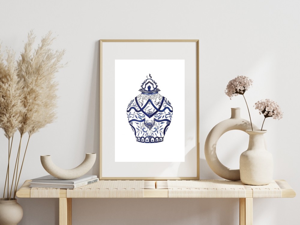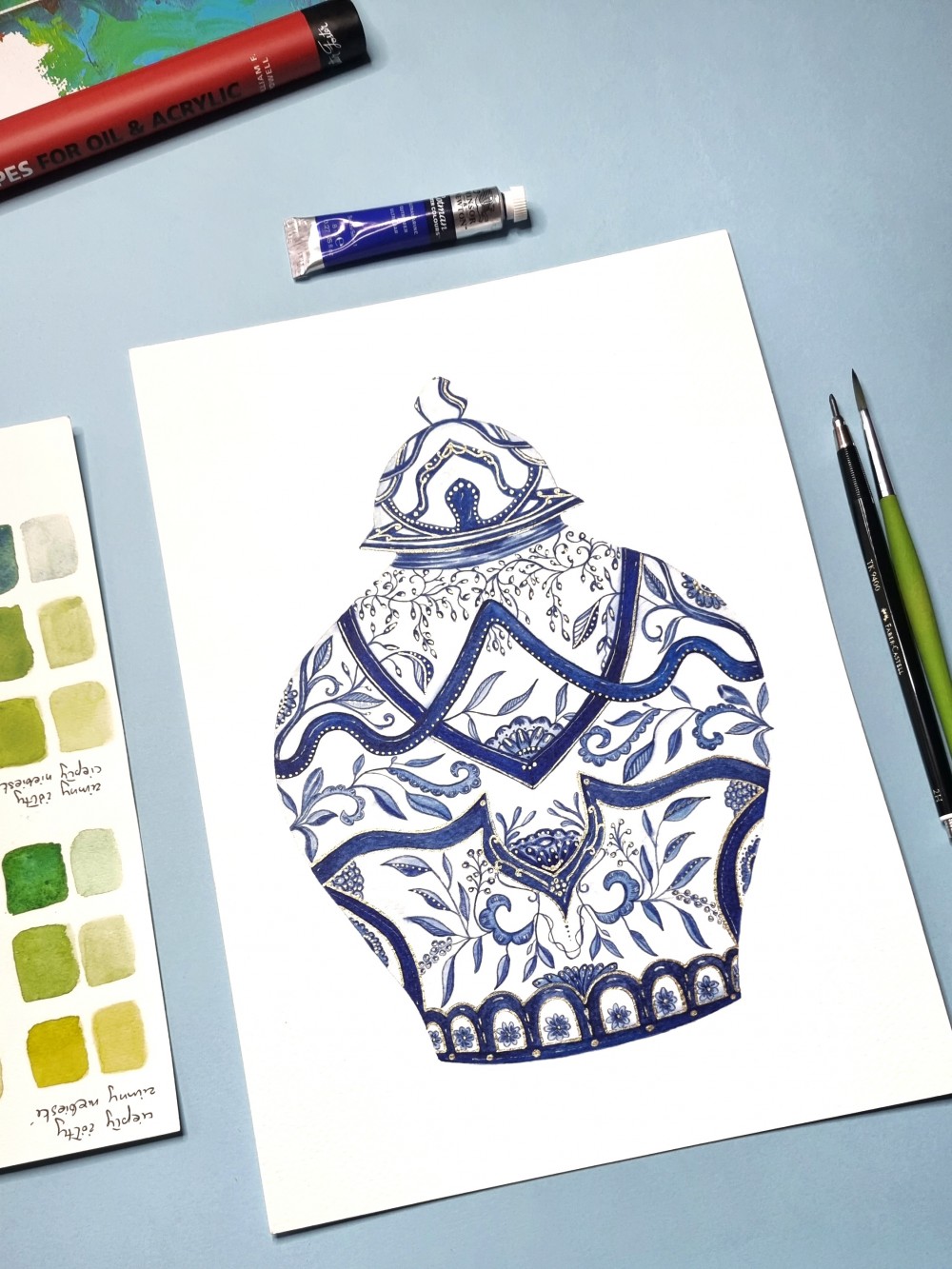 Decorative amphora painted for lovers of porcelain with blue patterns.