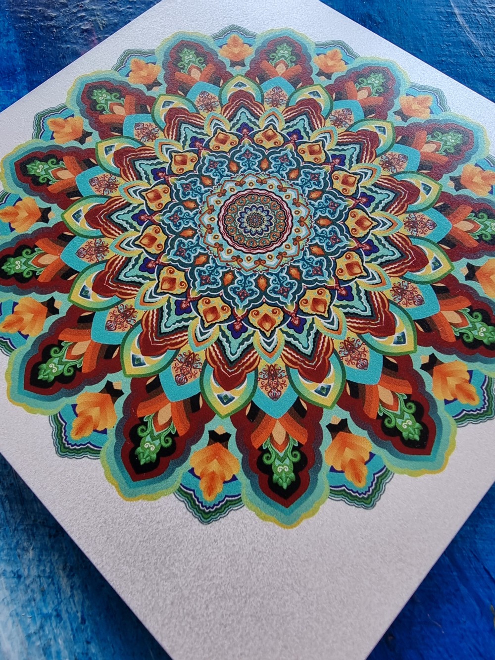 Otwierana kartka na każdą okazję z autorskim projektem mandali, drukowana w Polsce na pięknym, perłowym papierze. Do kartki dołączona jest pasująca koperta.