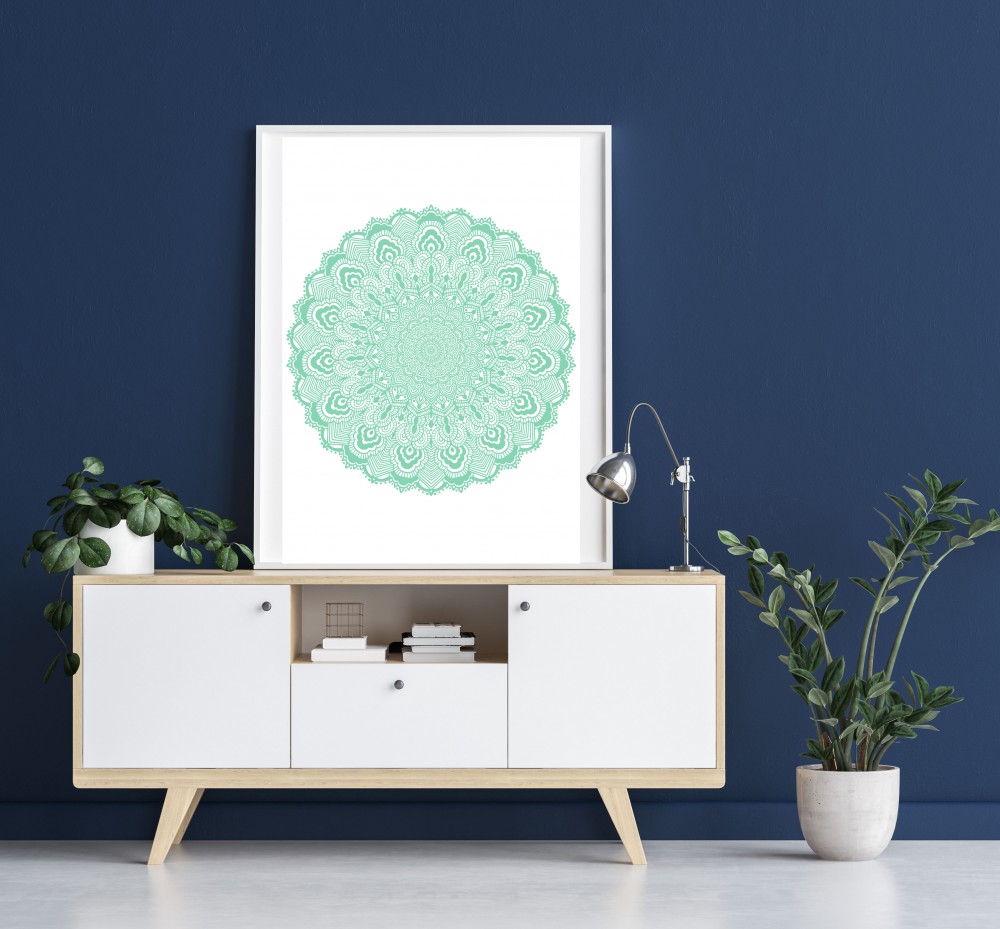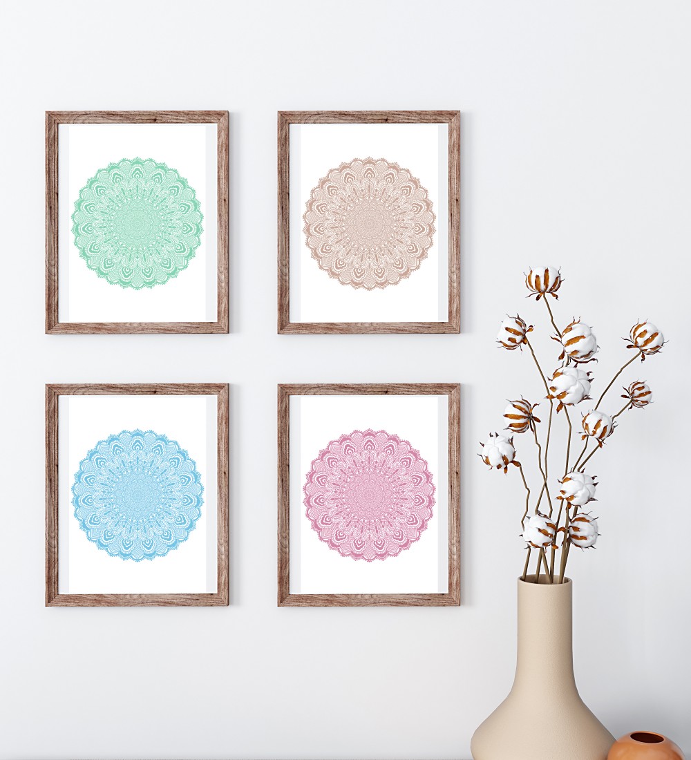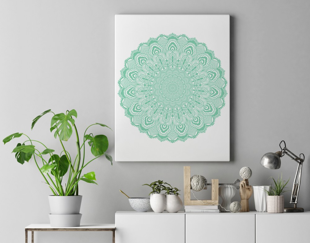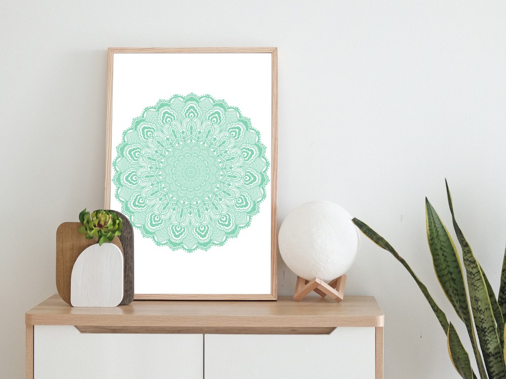 Autorski, subtelny i delikatny wzór mandali o pastelowym, zielonym kolorze. Inspiracją do jej