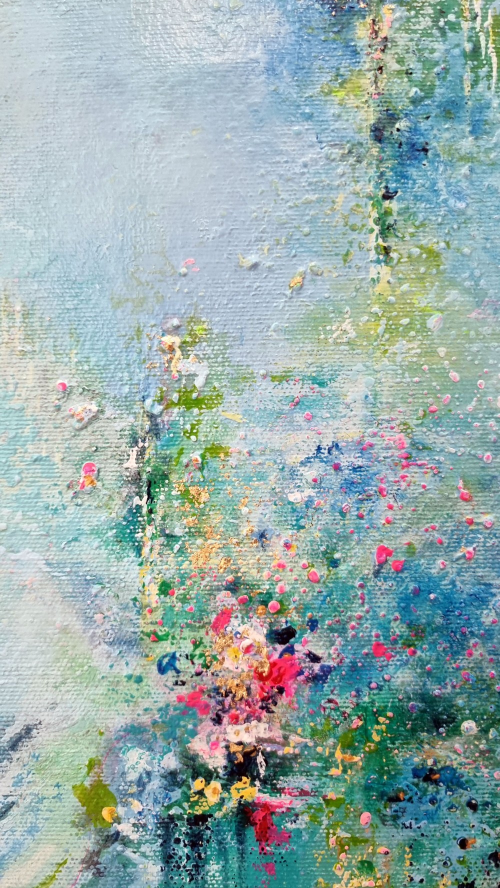 Obraz akrylowy Poranne Promienie to dzieło namalowane na pograniczu dwóch swiatów, realnego i abstrakcyjnego. Posiada ciekawą fakturę. Obraz łączy w sobie kolory bieli, niebieskiego, zielonego i różu. Emanuje spokojem i optymizmem. Wprowadzi energetyzujący pierwiastek, ożywi wnętrze pozytywną energią, a przestrzeń zyska nowy, indywidualny klimat.